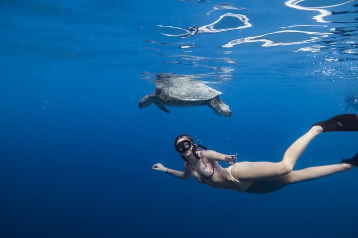 We will boat over towards Diamond Head and spend about 10-15 minutes there while we discuss safety for snorkeling with turtles. In this time, the customers may also take photos or request professional photos in front of the mountain.