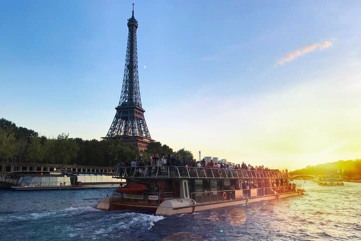 You will experience a 3-course dinner including a drink (soft drink, beer or a glass of wine) and a 1-hour-sightseeing cruise. It is up to you to choose whether you prefer having dinner first and taking the cruise after your meal or if you start by the cruise and enjoy your dinner after it. The Bistro Parisien with its unique situation on the Seine River, just at feet of the Eiffel Tower, welcomes you for dinner at 6.30 pm. Take your seat at your private table and choose your dishes from the à-la-carte menu. The authentic French cuisine is cooked from seasonal produce. A vegetarian option is available. Before or after dinner, take a sightseeing cruise and appreciate the breathtaking views of the famous must-see landmarks and discover many facts about the culture and the history of Paris via the audio phones or the interactive smartphone app available in 11 languages (English, French, Italian, Spanish, Portuguese, German, Japanese, Russian, Arabic, Hindi, Chinese).