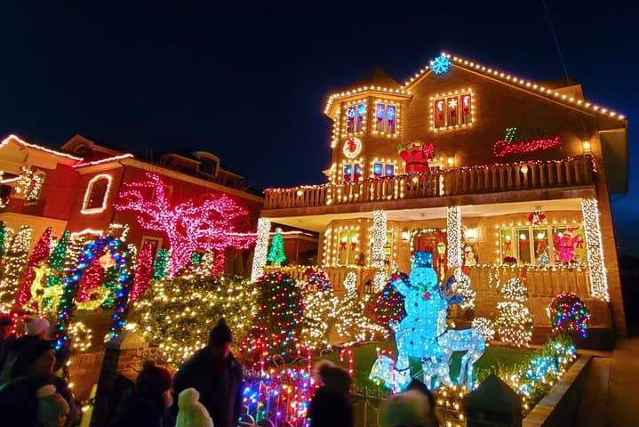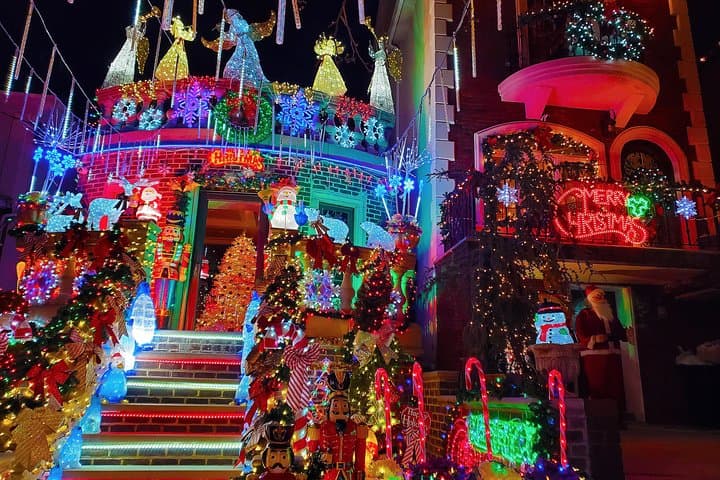 Nothing says Christmas like Dyker Heights, the most famous display of lights on the planet. Locals have been decorating their homes—personally and professionally—since the '80s, making it a true NYC winter wonderland. THE TOUR WILL TAKE PLACE RAIN or SHINE! The ride from Midtown to Dyker Heights in Brooklyn is about an hour long on board of our comfortable coach fully heated with a restroom on board. Your guide will escort you to Lucy Spata's house, the house that started this tradition, and walk you through the most illuminated streets before taking you back to the bus. You will spend about an hour in Dyker Heights strolling around and taking pictures. The next stop will be at the foot of the Brooklyn Bridge in the DUMBO/Brooklyn Heights area of Brooklyn. You will have about 25 minutes to take pictures of the breathtaking Manhattan skyline and the Bridge. Then you will return to Manhattan via the Manhattan Bridge. The tour ends at the Bryant Park Winter Village.