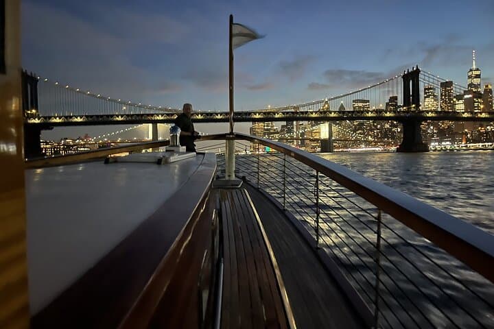 Experience the bright New York City skyline with views from the water in New York Harbor on this night time cruise. Join us aboard a 1920s inspired motor yacht and enjoy elegant seating in the main, climate controlled salon. Relax and take in the sights of Ellis Island, the Statue of Liberty and Governors Island along with sweeping views of the Manhattan skyline at night.
