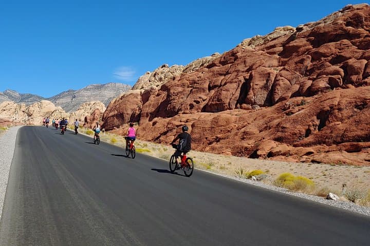Take in panoramic views of sandstone formations on this Electric Bike Tour through Red Rock Canyon National Conservation Area. This is NOT just about Renting an ebike and wondering around on your own. An informative Guide is with you every step of the way to show you the best Red Rock stops while giving loads of information about the Park and the local desert. Ride a total of 17 miles (27-km) on a one-way scenic loop thru the hills just outside the Las Vegas Strip and enjoy the option to either pedal or let the power of your bicycle whisk you around. Take four breaks along the way to explore and photograph sights like ancient petroglyphs on this small-group tour. A snack, bottled water and round-trip transport from select Las Vegas hotels are included.
